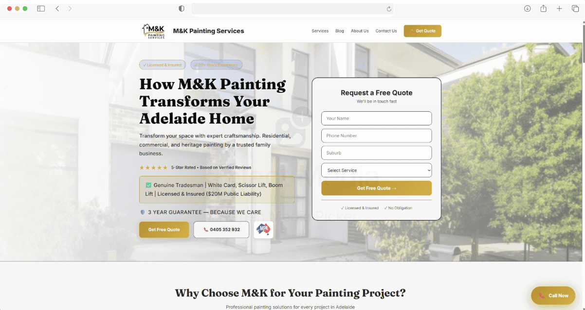 Our client M&K Painting went from page 3 to page 1 for "painter Adelaide" in 8 weeks. Their phone rings daily with new enquiries. That's what proper local SEO does.